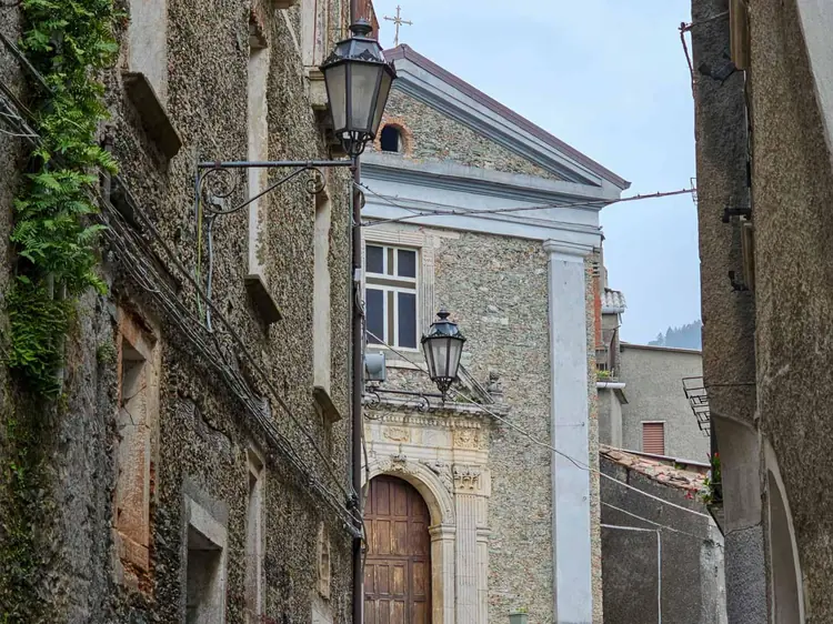 Un luogo che richiama l’autentico significato di “chiesa”, laddove la comunità stessa costruisce lo spazio sacro, il cui nome in dialetto, A Madonna u ‘Ritu, designa il rione che da essa si dipana, in vicoli e piazzette, nella parte superiore del paese.